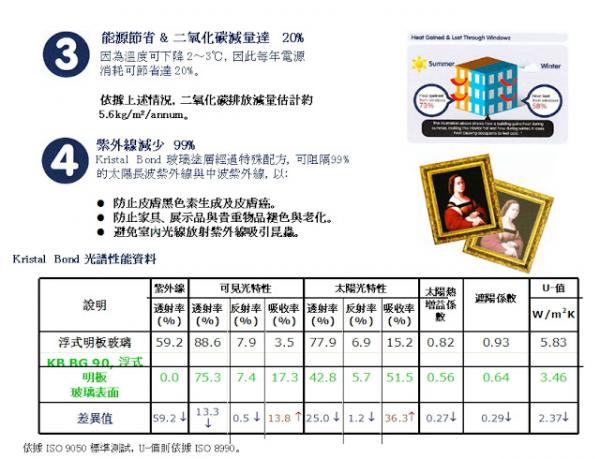 ①因為溫度可下降 2~3℃,因此每年電源 消耗可節省達 20%